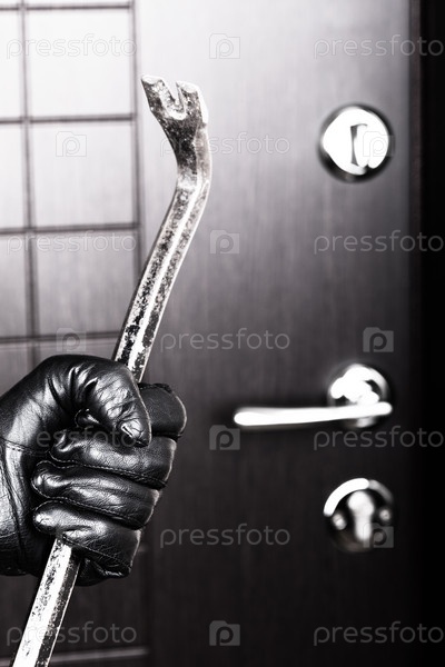 Рука вора в перчатке держит металлический лом
