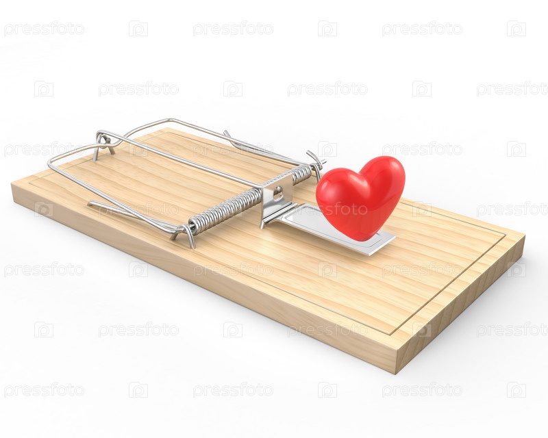 Сердце в мышеловке на белом фоне