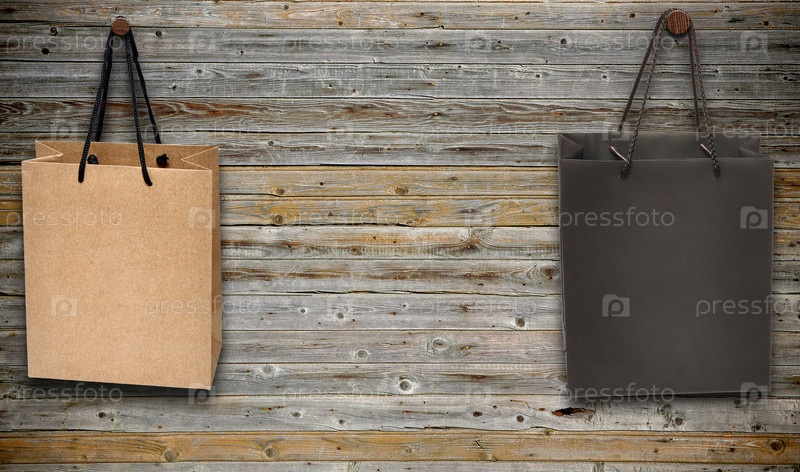 Два пакета, висящие на деревянной стене