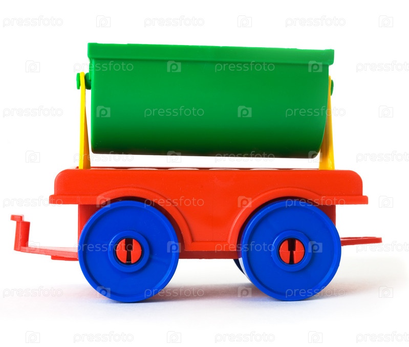 Игрушечная пластиковая коляска цвета на белом фоне