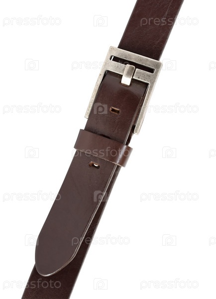 Коричневый кожаный пояс с пряжкой на белом фоне