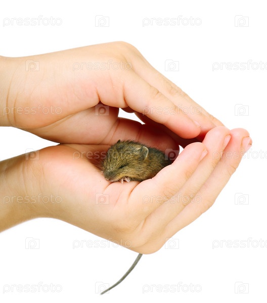 Мышка в руке на белом фоне