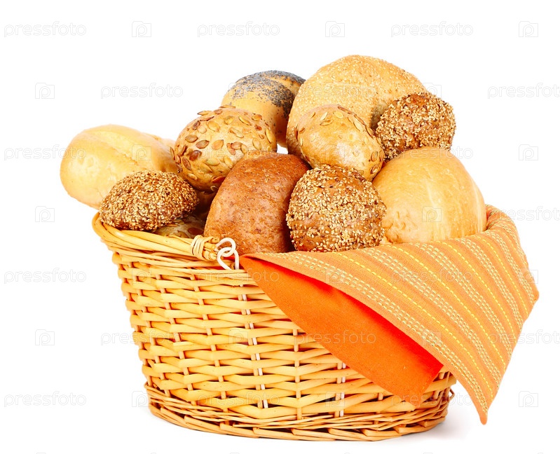 Выпечка в корзине на белом фоне