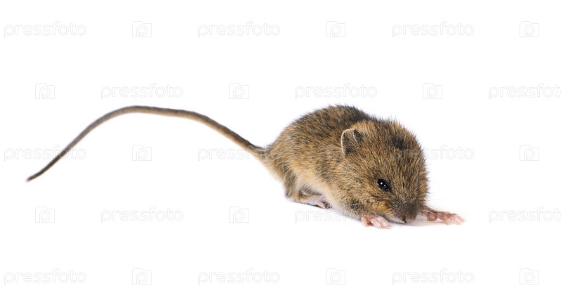 Маленькая мышь, готовая к прыжку, изолирована на белом фоне