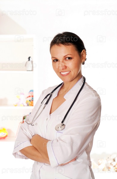 Женщина-врач на белом фоне