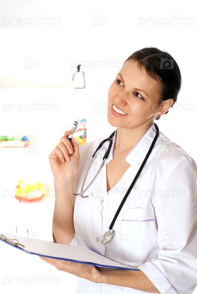 Женщина-врач на белом фоне