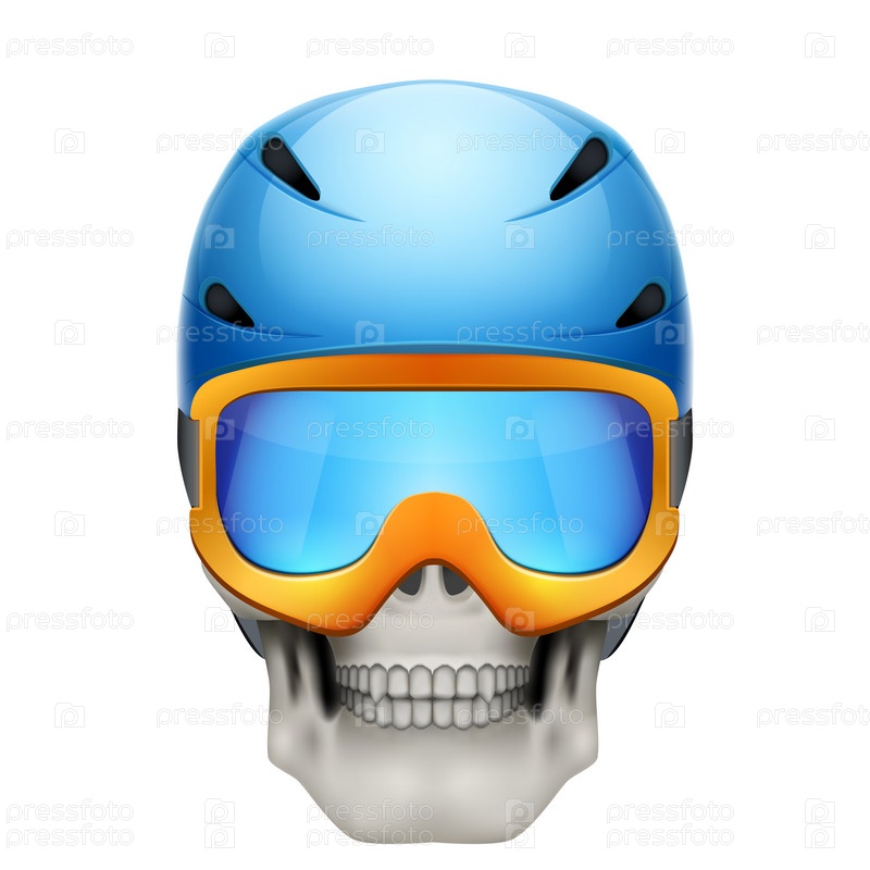 Человеческий череп в шлеме сноубордиста