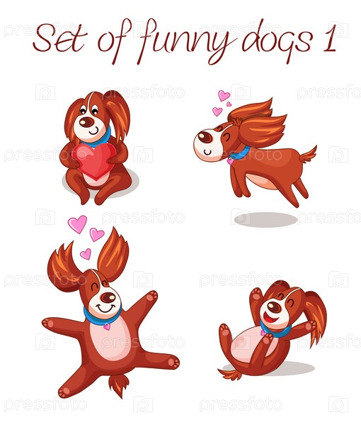 Набор забавных собак с сердечками