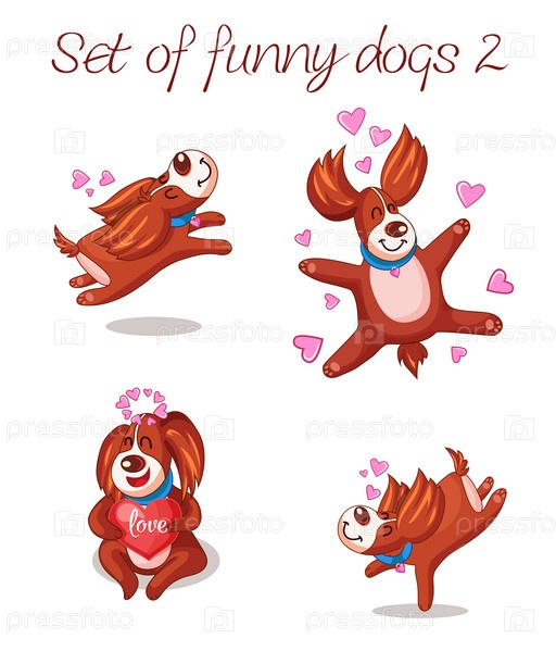 Набор забавных собак с сердечками