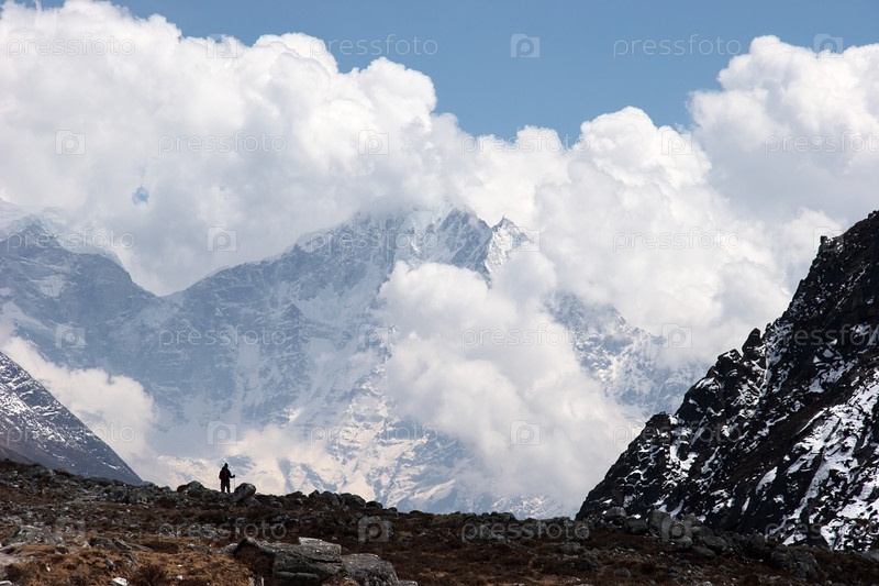 Вид на гору Тамсерку из долины Нгозумпа, регион Эвереста, Гималаи, Непал