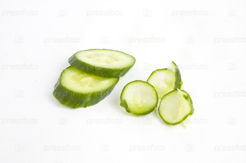 Ломтики огурца на белом фоне