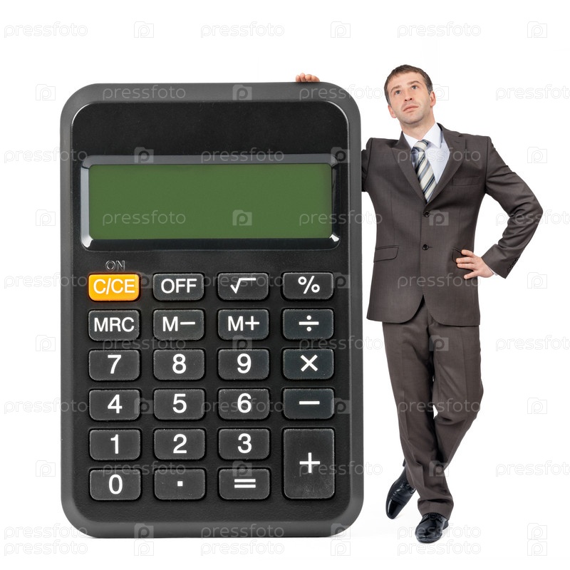 Бизнесмен с большим калькулятором