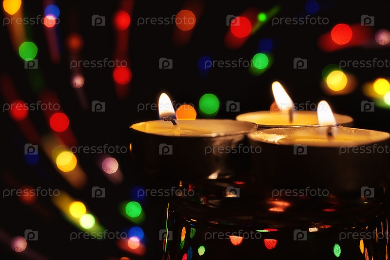Свечи на фоне цветных огней