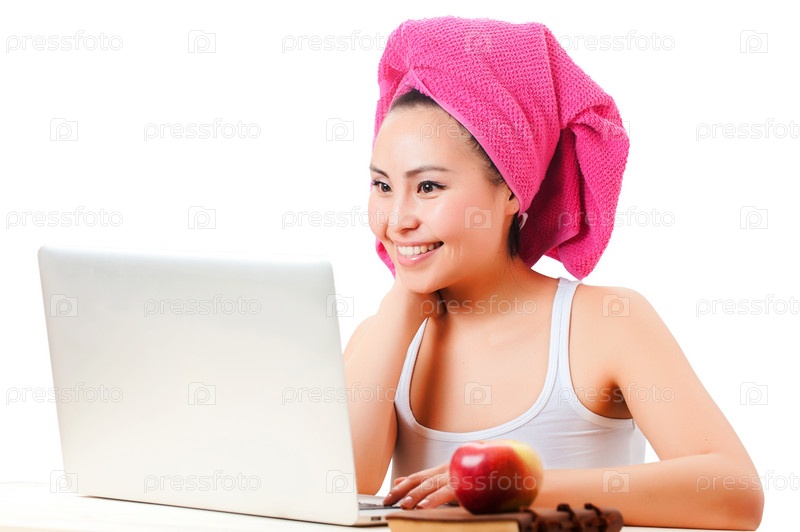 Портрет милой девушки с ноутбуком