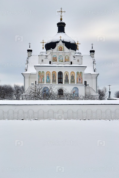 Православный храм на фоне зимнего пейзажа