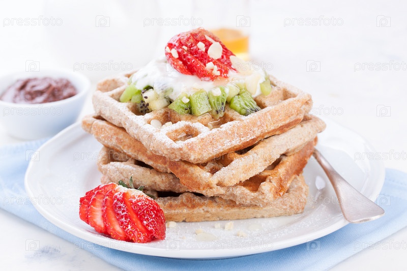 Вафли с фруктами и ягодами