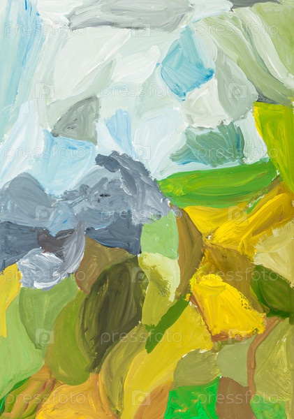 Пейзаж с зелеными и желтыми полями