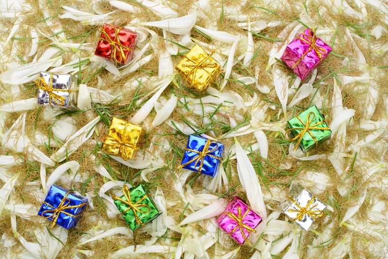 Подарочные коробки на фоне лепестков
