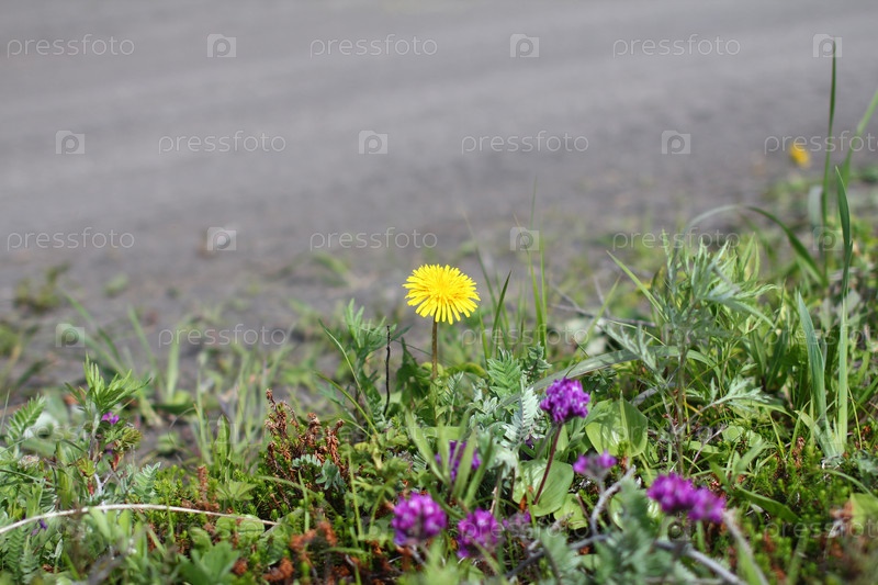 Одуванчик на обочине дороги