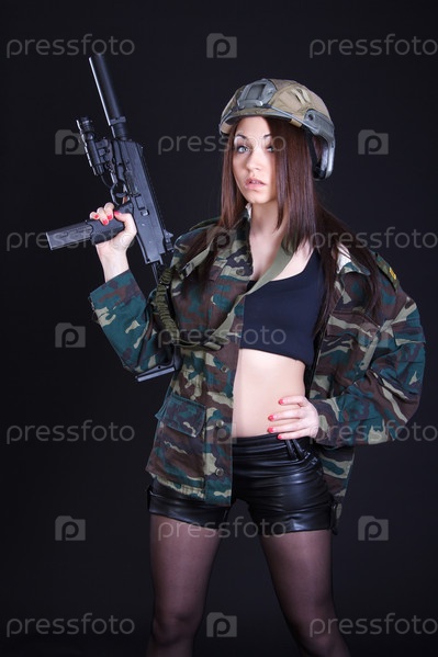 Девушка в военной форме с оружием