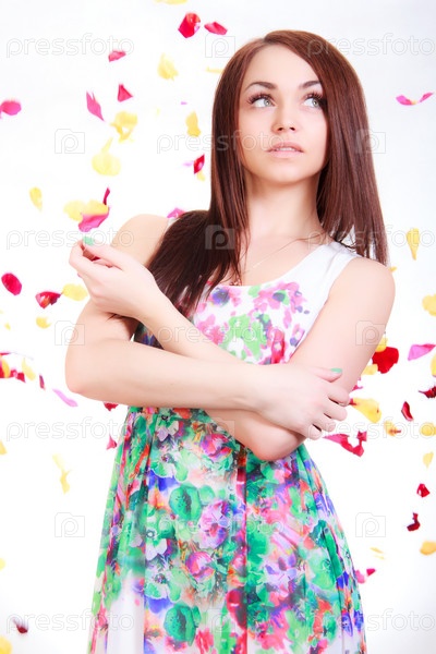 Красивая молодая женщина в ярком платье