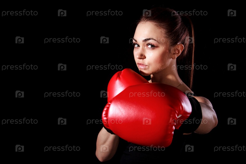Красивая молодая женщина в красных боксерских перчатках