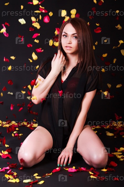 Красивая молодая женщина среди лепестков роз