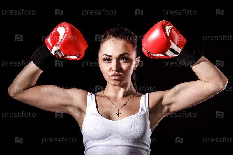 Красивая молодая женщина в красных боксерских перчатках