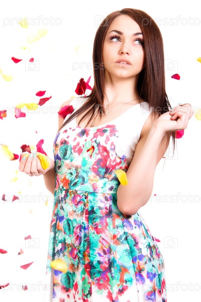 Красивая молодая женщина в ярком платье