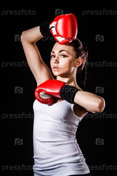Красивая молодая женщина в красных боксерских перчатках