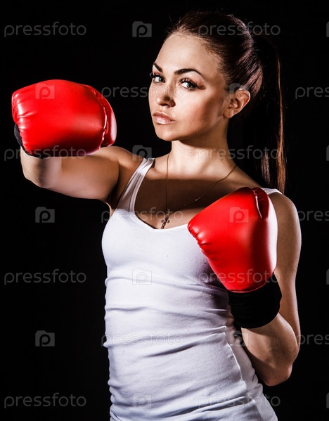 Красивая молодая женщина в красных боксерских перчатках