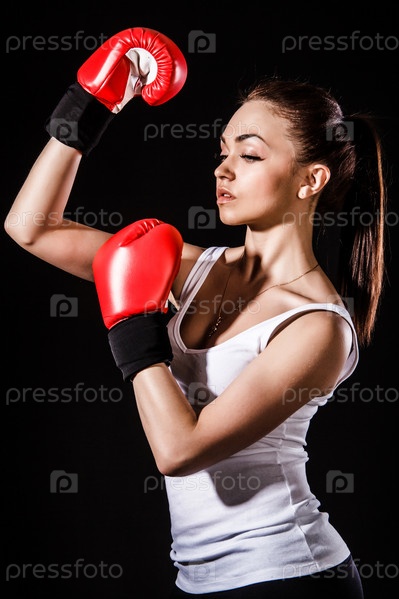 Красивая молодая женщина в красных боксерских перчатках