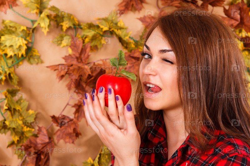 Милая молодая женщина с яблоком