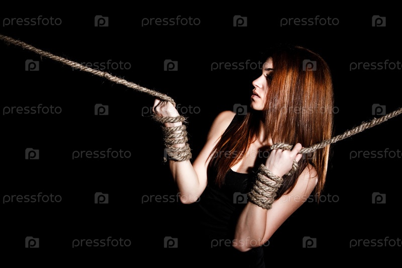 Красивая молодая женщина со связанными руками