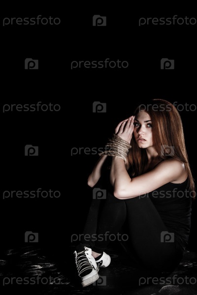 Красивая молодая женщина со связанными руками