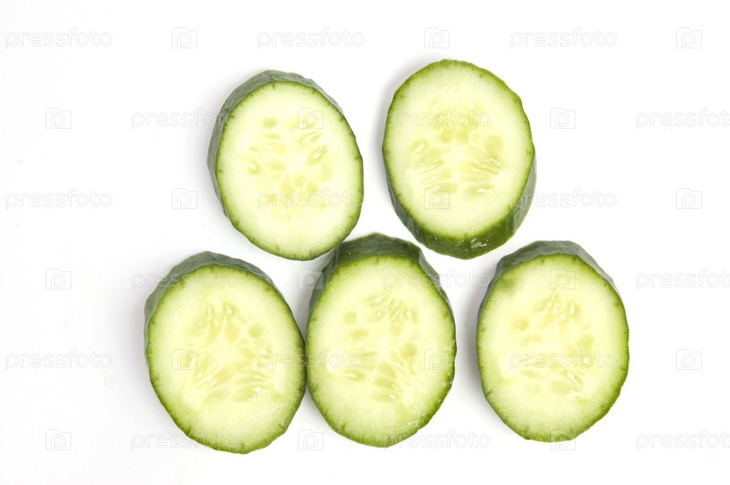 Кусочки огурца на белом фоне