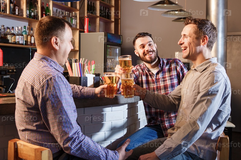 Счастливые друзья в пабе