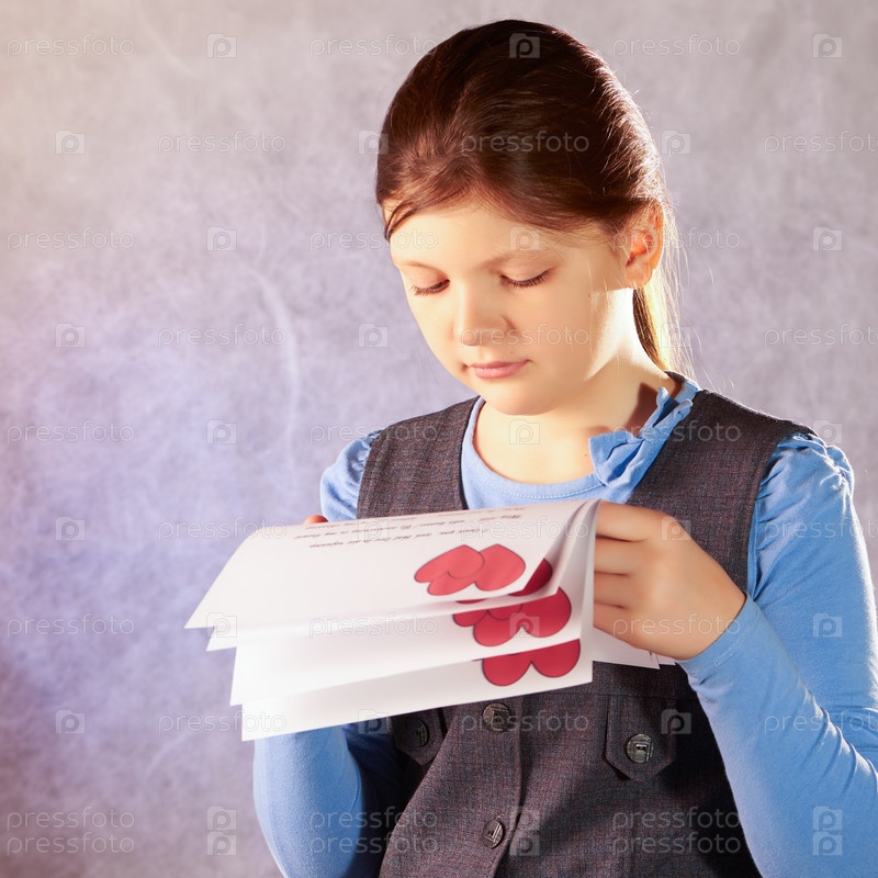 Девочка смотрит валентинки