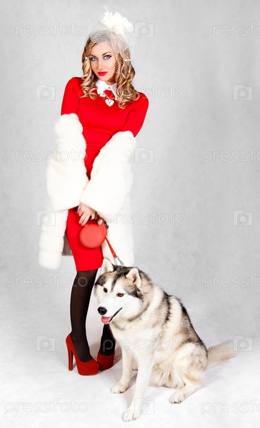 Привлекательная женщина с хаски