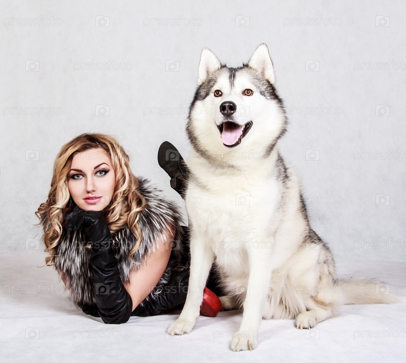 Красивая молодая женщина с хаски