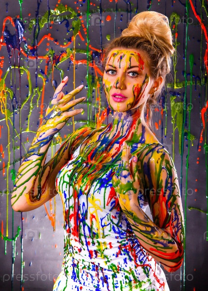 Красивая женщина в разноцветной краске