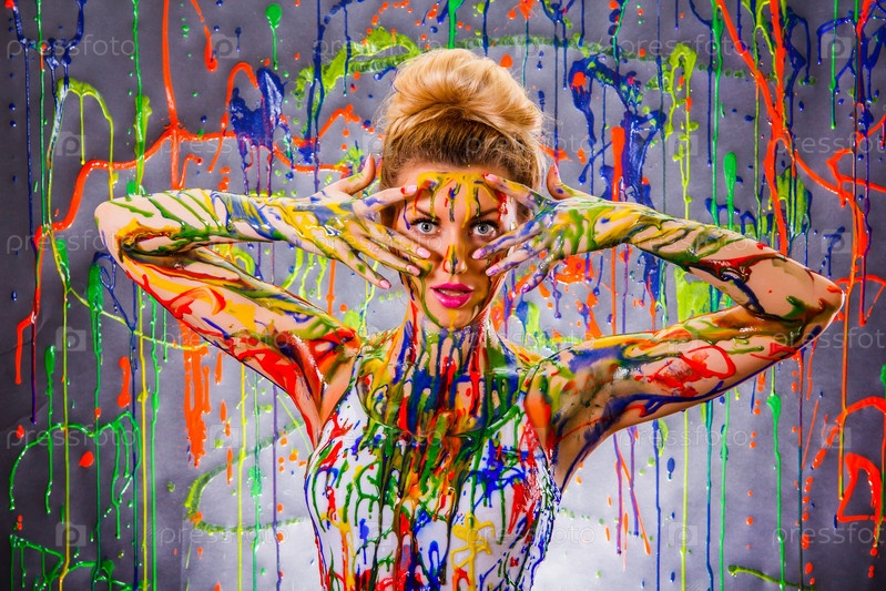 Красивая женщина в разноцветной краске