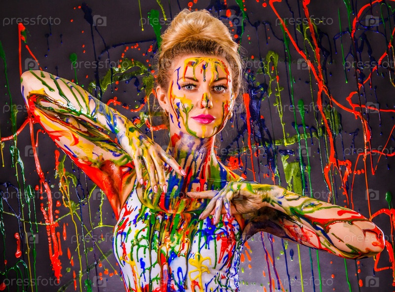 Красивая женщина в разноцветной краске
