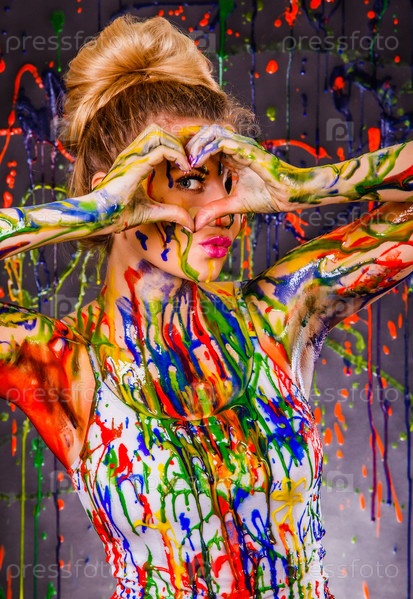 Красивая женщина в разноцветной краске