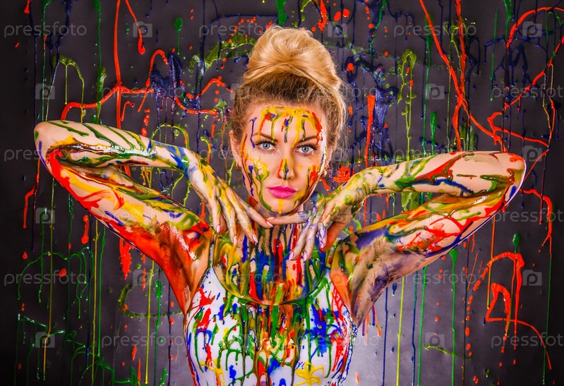 Красивая женщина в разноцветной краске