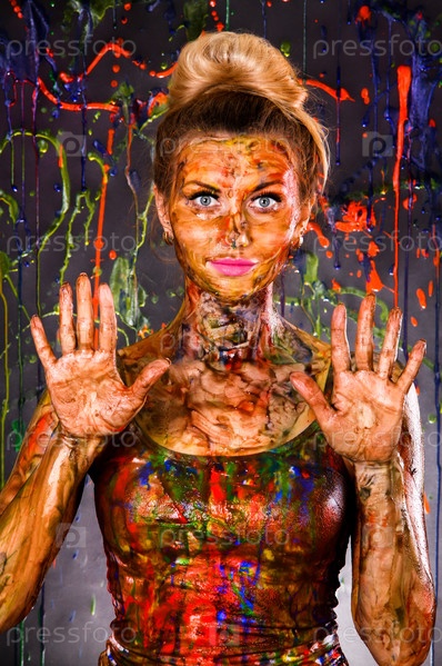 Красивая женщина в разноцветной краске