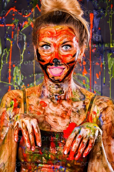 Красивая женщина в разноцветной краске