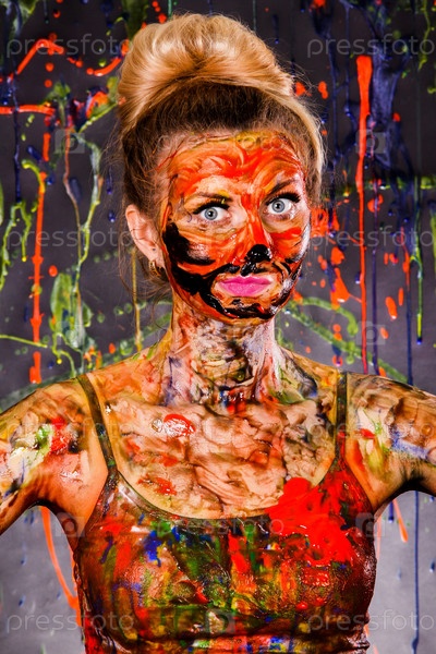 Красивая женщина в разноцветной краске
