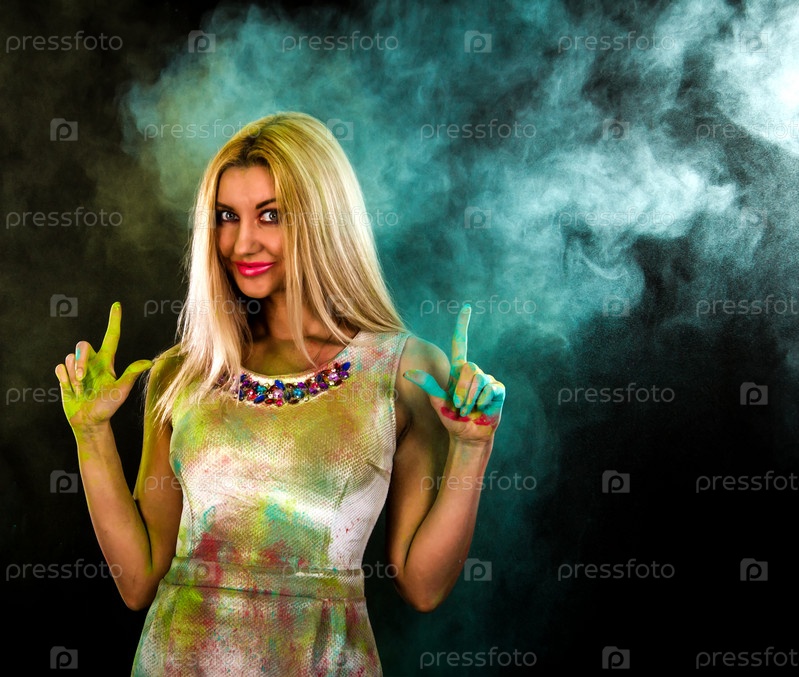 Красивая блондинка в сухой краске