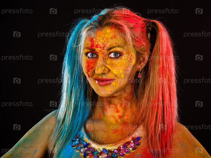 Красивая блондинка в сухой краске